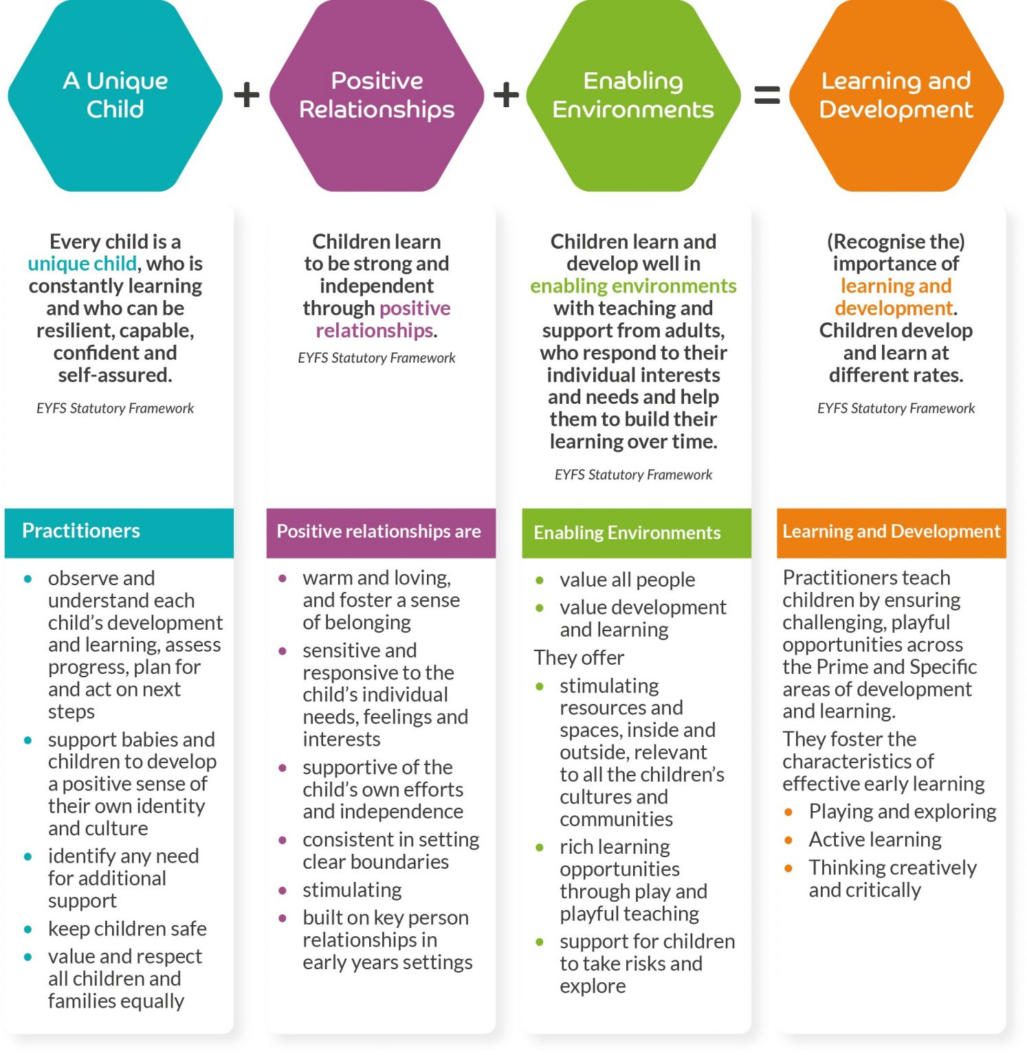 The ways in which a child interacts and engages with their environment, peers and supporting adults – playing and exploring, active learning and creating and thinking critically – underpin all teaching and learning opportunities with the ultimate aim of creating motivated and curious learners.