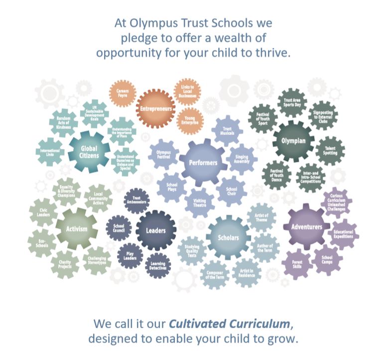 We strive to offer an enhanced ‘cultivated curriculum’ offering our children more opportunities to develop skills across and beyond the national curriculum. Our Olympus Pledge outlines the enhanced curriculum offer for our children.