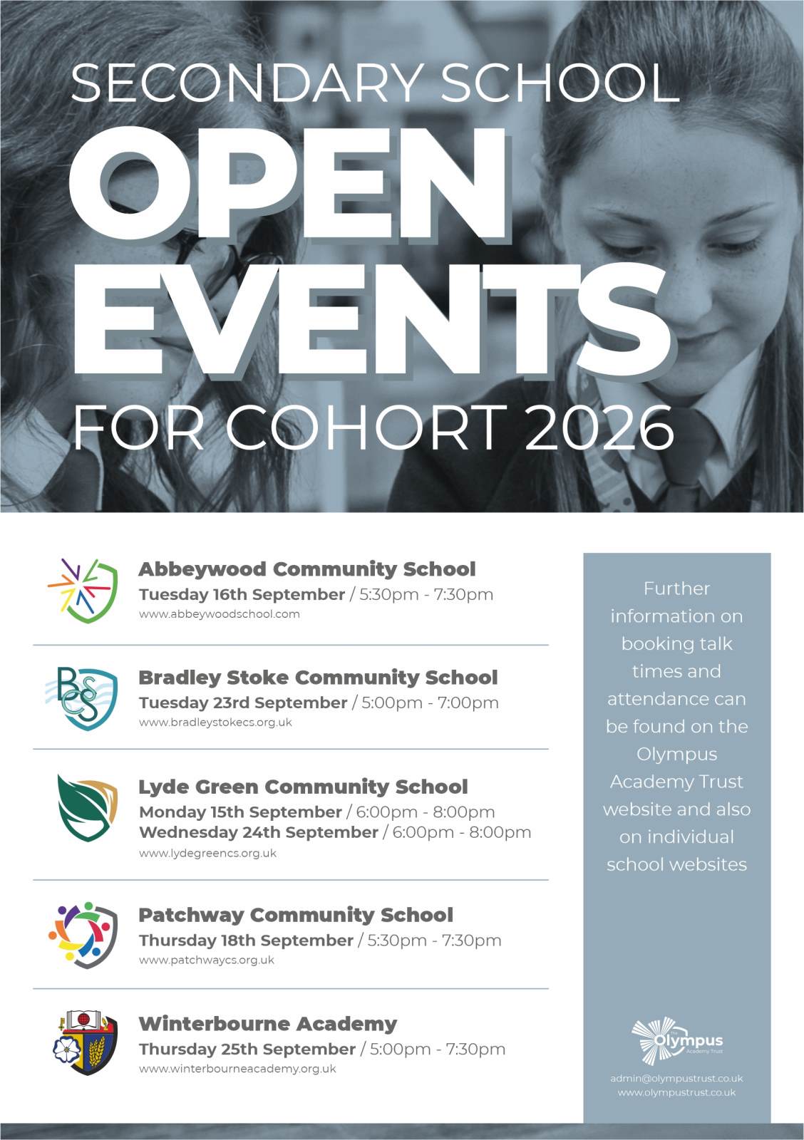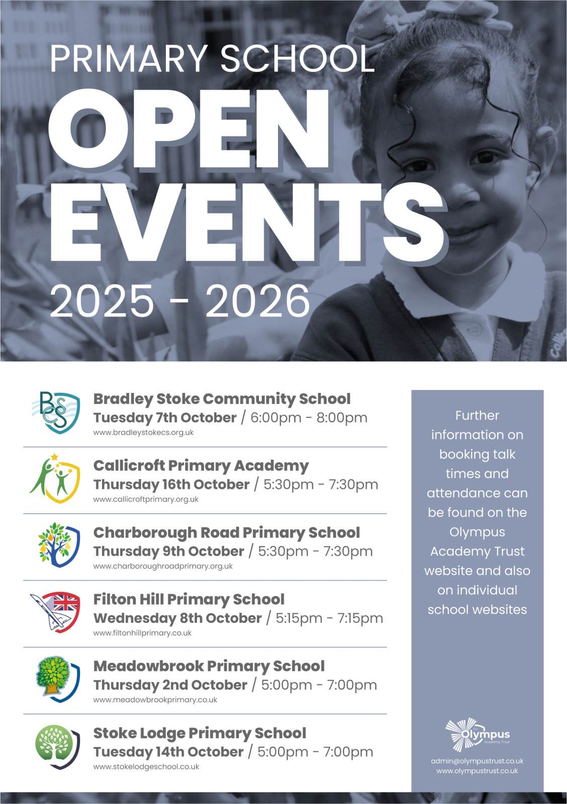 For 2026 Admissions to Primary our Open Event is on Tuesday 14th October 2025 at 5pm. Additional Daytime tours below.